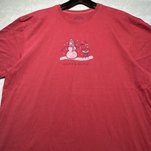 Life Is Good Chill Snowman Red Short Sleeve Men’s Size. XL