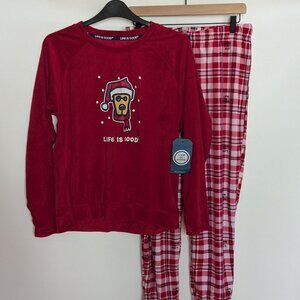 Life Is Good Christmas Pajama Set Women's Size Large Red Plaid NWT