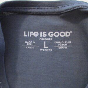 Life Is Good Crusher Tee Dark Blue Orange Cat Large
