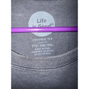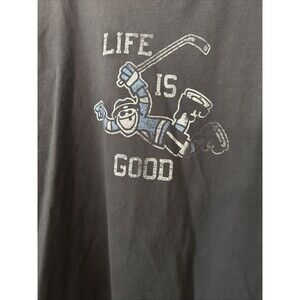 Life Is Good Crusher Tee Mens 2XL Gray Spell Out Sports Hockey Long Sleeve