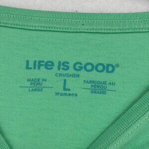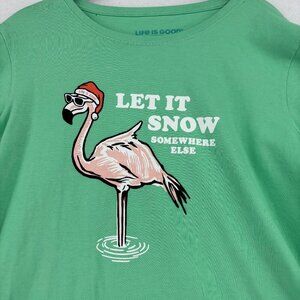 Life Is Good Crusher Tee Shirt Womens Size L Green Flamingo Let It Snow Graphic