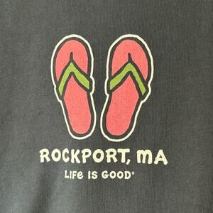 Life Is Good Crusher Tee Women's Size L Rockport MA Pink Flip Flops Beach