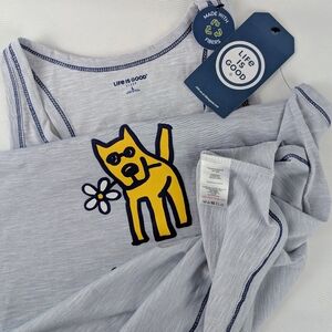 Life Is Good Dog Daisy Print Tank Top Sleep Lounge Grey Navy L NWT