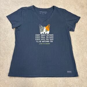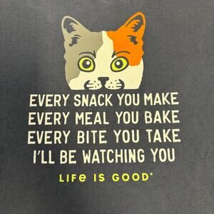 Life Is Good "Every Snack You Make" Cat Graphic V-Neck T-Shirt Size L