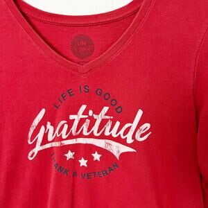Life Is Good Size Small S Gratitude Thank a Veteran Long Sleeve V-Neck T-Shirt