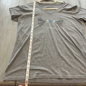 Life Is Good Gray Beach Chairs V Neck Crusher Tee T Shirt Women’s Sz L