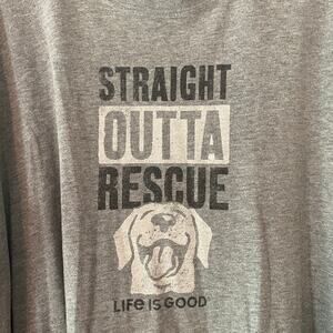 Life Is Good Gray Long Sleeve Shirt Straight Outta Rescue Dog Crusher Tee XXL