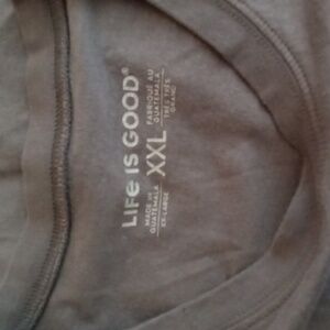 Embrace a casual yet bold look with this Life Is Good short sleeve tee, featuring a striking American flag graphic on a soft gray background. The crew neck design ensures comfort, making it an ideal choice for everyday wear. This tee combines style and simplicity, perfect for showcasing your patriotic spirit. it has two tiny holes on the collar..other than that it's in good condition...see measurements for best fit.