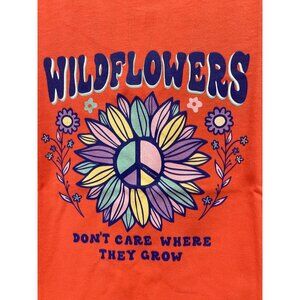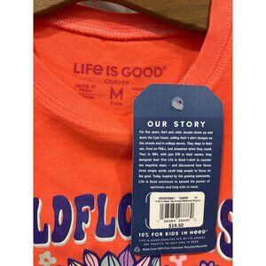 Life Is Good Groovy Wildflowers Crusher Tee Kid M Mango Orange Cotton TShirt NEW