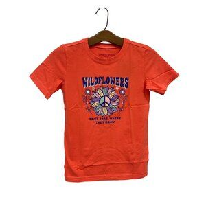 Life Is Good Groovy Wildflowers Crusher Tee Kids M Mango Orange Cotton T Shirt NEW