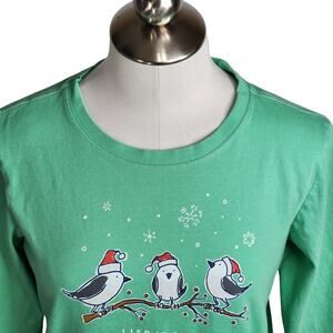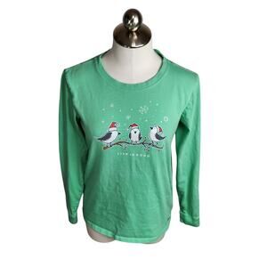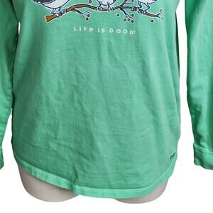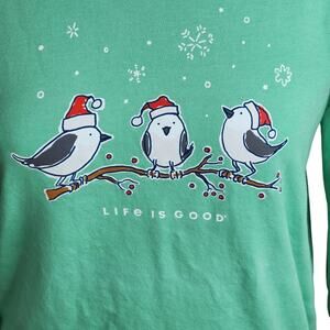 Life Is Good Holiday Birds On Branch Long Sleeve Crusher Tee in Green. Women's Size Medium.
