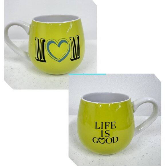 Life Is Good Home "Mom" Heart Mug Cup Lime Green. 16oz. Coffee Tea