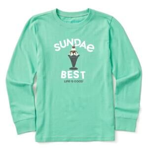 Life Is Good Kids Unisex Green Ice Cream Sundae Best Long Sleeve Tee XXL