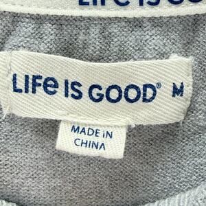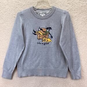 Life Is Good Knit Pullover Sweater Gray Size Medium Dog Girl Relax Coffee Lounge