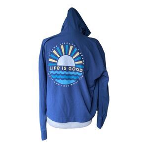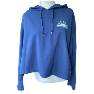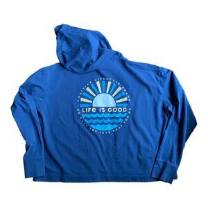 Life Is Good L Crusher-Flex Boxy Hoodie Sunset Graphic Blue Lounge Pullover