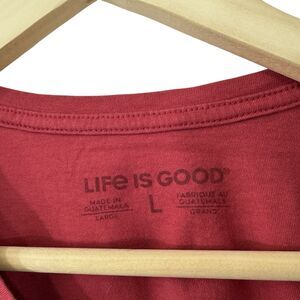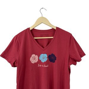 Life Is Good Large Tee Shirt Top Red Roses Short Sleeve V-Neck Cotton Womens