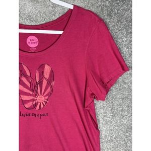 Life Is Good Livin On A Pair Flip Flops Classic Fit Tee Shirt Women Large Pink