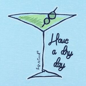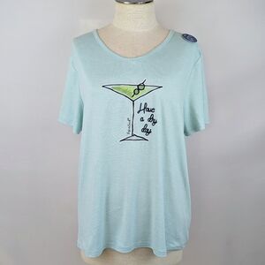Life Is Good Martini Embroidery & Print PJ Set Short Sleeve Top Pant Teal XL NWT