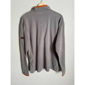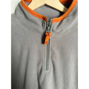 This Life Is Good quarter zip Fleece Pullover is the perfect addition to any casual wardrobe. Color is a greenish gray (looks more gray in photos), with the Life Is Good logo as an accent. Long sleeves. Machine washable. This pullover is a solid pattern with a fleece fabric.
