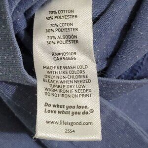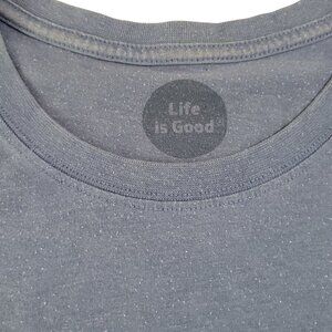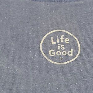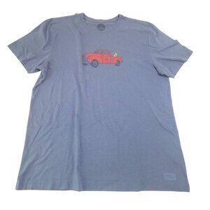 Life Is Good Mens Blue Crewneck T-Shirt Red Truck Graphic Cotton Blend Size L