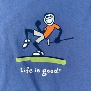 Life Is Good Men's Blue Jake Fist Pump Golf Crusher Tee, Size Medium EUC