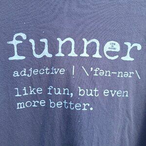 This hilarious Dark Blue long sleeve shirt is made of heavyweight 100% USA grown cotton fabric (5.9 oz). It features the definition of FUNNER! Saying: "funner (adjective) Like fun, but even more better."