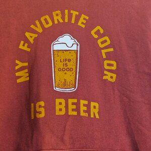 Life Is Good Mens Hoodie Sz M "My Favorite Color Is Beer" Rustic Red Sweatshirt