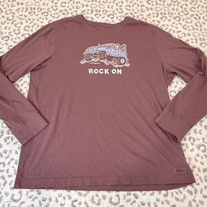 Life Is Good Men's Long Sleeve Crusher T-Shirt; "ROCK ON" theme; Mauve; Large