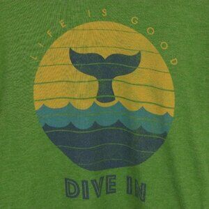 Life Is Good Men's Medium Green Blue 'Dive In' Graphic Crewneck Long Sleeve Tee