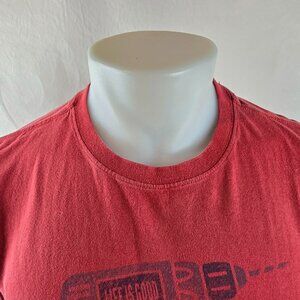 Casual Life Is Good men’s tee featuring “Mr. Fix It” drill graphic print. Red cotton shirt, size Medium, made in Peru. Comfortable and soft classic fit. Pre-owned with light normal wear.