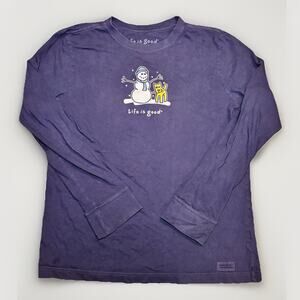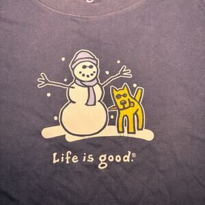 Life Is Good Mens Small Long Sleeve Shirt Snowman Cat Winter Graphic Tee