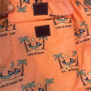 Life Is Good Mens Swim Trunks Board Shorts Drawstring Palm Tree Print Coral XL