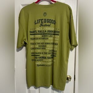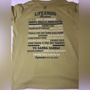 This NWT Life is Good 2013 Festival Light Green Short Sleeve Tshirt is a size Large. This Tshirt has the Date September 21 & 22, 2013. The line up is also on the back of the Tshirt. I believe this shirt could be for Men or Women.
