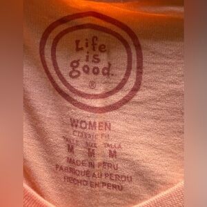 Life Is Good Orange Cotton Graphic Tee “ Half Full” Classic Fit Women’s Medium