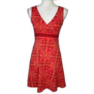 Life Is Good Orange Geo Print Sleeveless Surplice V-Neck Active Mini Dress Sz 4