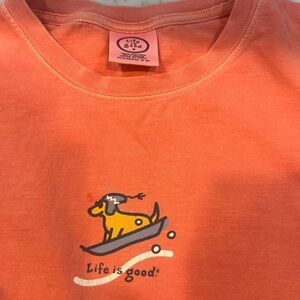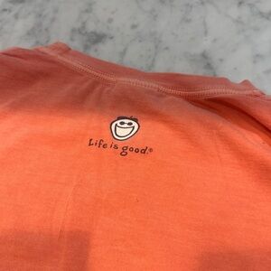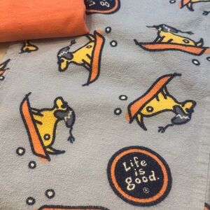 Orange long sleeve shirt with 'Life is Good' graphic. Matching long bottoms in a soft feel good flannel. Great for an upcoming ski trip!