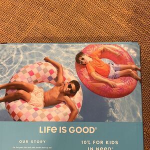 Dive into summer with the Life Is Good inflatable swim tubes, featuring a vibrant pink design perfect for poolside fun. These durable and buoyant tubes ensure endless enjoyment, making them a must-have for any water adventure.