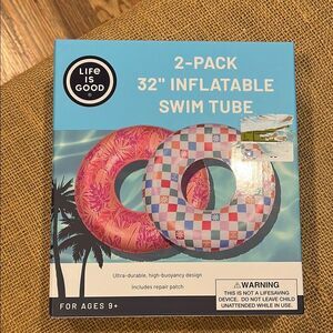 Life Is Good Pink Inflatable Swim Tube 2-Pack