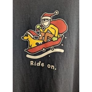 Excellent pre-owned condition. Life is Good short sleeve navy t-shirt. Santa on his sleigh and "Ride On" . Size Medium