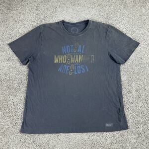 Life Is Good Shirt Mens L Gray Not All Who Wander Are Lost Classic Fit