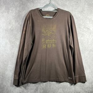 Life Is Good Shirt Mens Size Large Brown Graphic Print Long May You Run Classic Fit