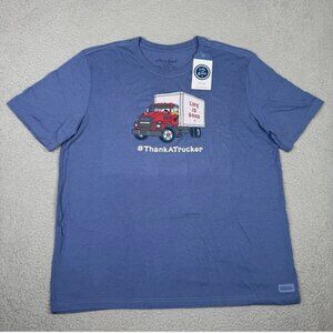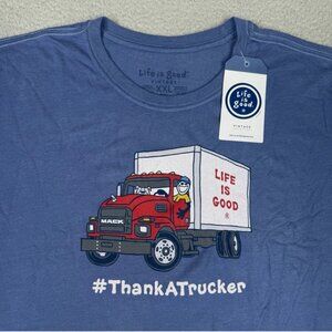 Life Is Good Shirt Mens XXL 2XL Blue Mack Trucks Thank A Trucker Crusher Tee NW