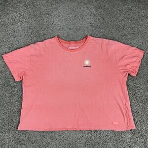 Life Is Good Shirt Womens Extra Large Pink Striped Cropped Sun Embroidered