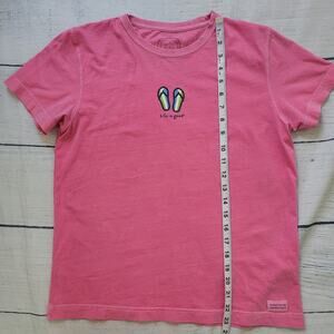 Life Is Good Size M Women's Pink Crewneck T-Shirt Bright Flip Flops Logo