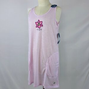 Life Is Good Sleep Shirt Nightgown Sleeveless Pockets Flower Print Pink M NWT