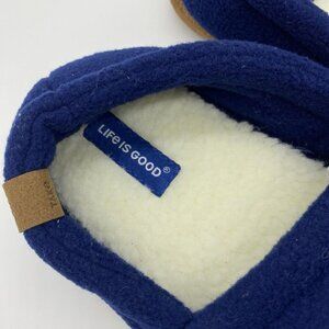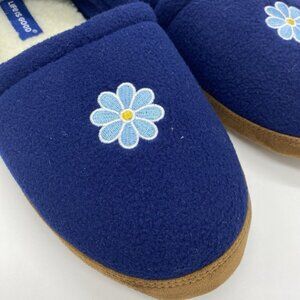 Life Is Good Slippers Women 9 Blue Daisy Embroidered Fleece Indoor Outdoor Shoes