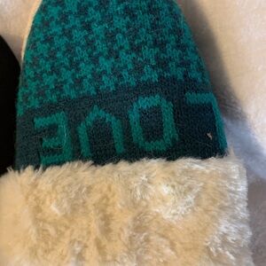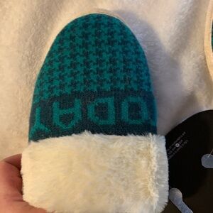 New Life is Good fuzzy slip on slippers Sz small (5/6) Words “Love Today” are printed on them NWT