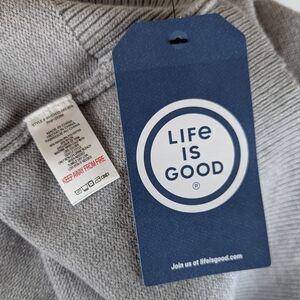 Life Is Good Sweater Hooded Knit Embroidered Gingerbread Man Grey M NWT