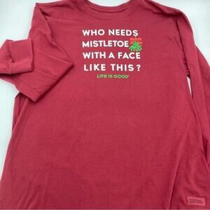 Life Is Good T Shirt Men's Large Who Needs Mistletoe Christmas Red Long Sleeve