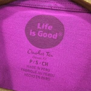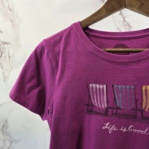 Life Is Good T Shirt Women Small Pink Crusher Tee Crew Beach Chairs Sun Bathing
